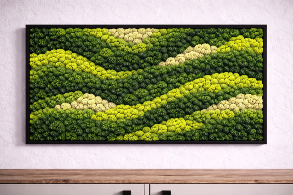 Preserved Moss Portrait is one of the fastest-growing trends in modern interior design in Riyadh. It combines natural beauty with artistic elegance, offering a long-lasting green feature without watering, sunlight, or maintenance.